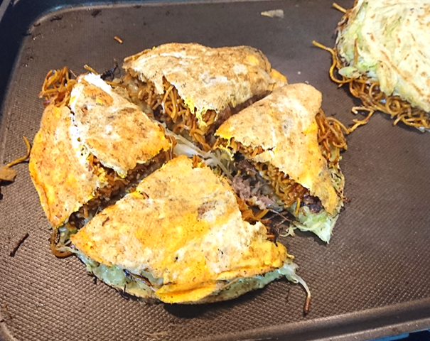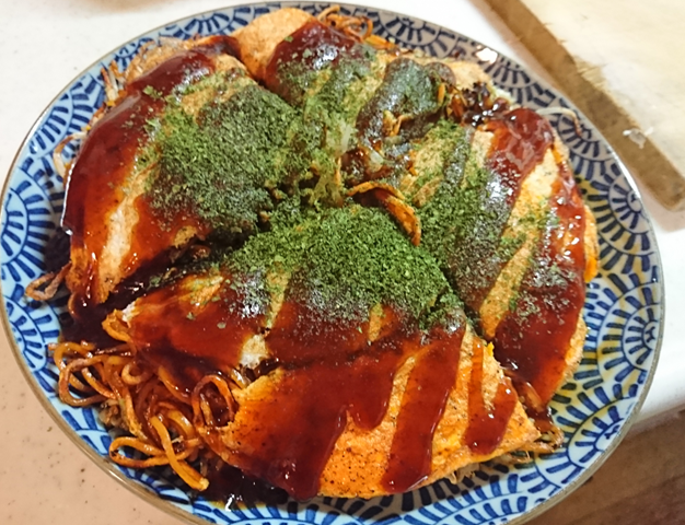 で、料理が終わるごろは部屋中ソースのにおいが充満しています。