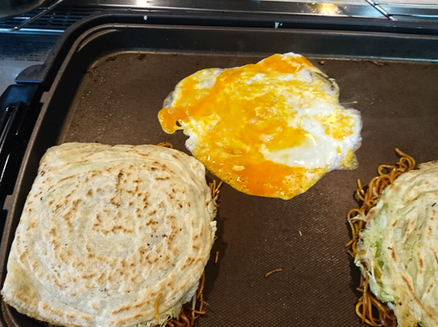 広島風お好みは、キャベツ、もやし、肉、麺、塩コショウを振るタイミング・・・等、店ごとに違うのです。あと、おもりを載せキャベツを焼く店など、奥が深いのです。(笑)