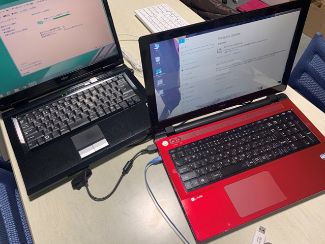 ちなみに右側赤いパソコンは2年前に発行されたWindows10のアップデートができていませんでした。