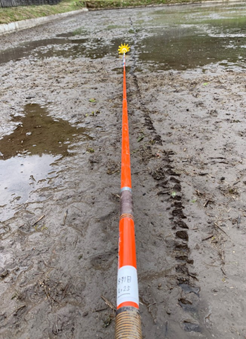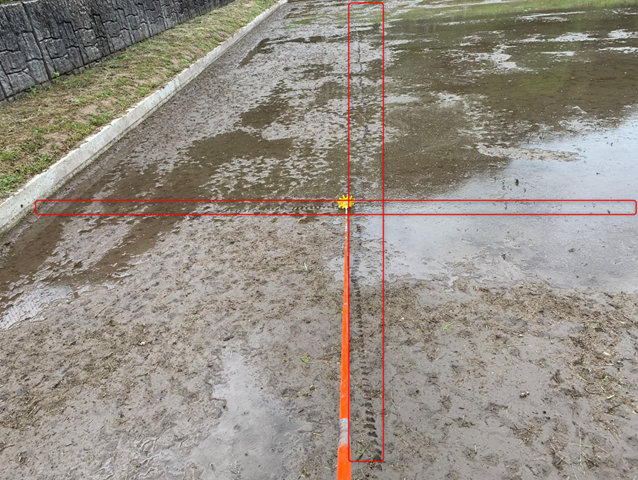農作業をしている人でないとわからないのですが、田植え機って最後に外回りを2周回るのですが、その範囲を赤枠のようにしるしをしておくと便利なのです。