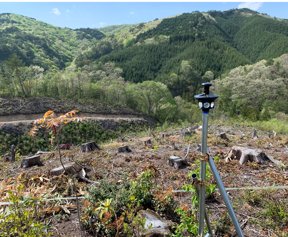 この現場の測量器(TS)は1人で測量ができる”自動追尾型”なので、TSと三脚をこの広い現場を持ち歩かないといけないのです。そのうえ、野山を歩いて”後視”にプリズムを置きにいかないといけないのです。
