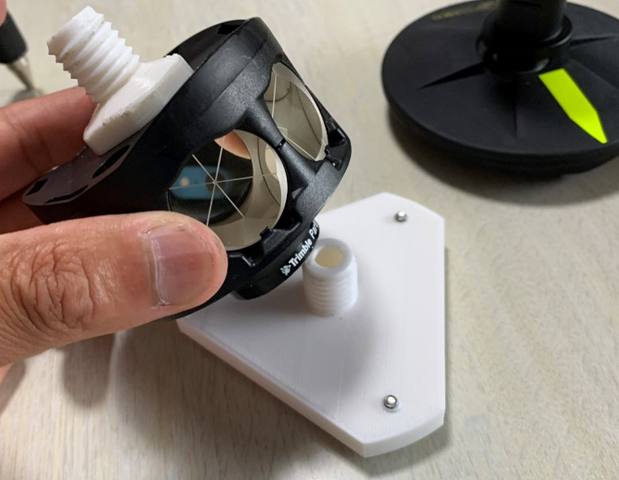 余談ですが、360度プリズムってどこを向けても中心を視準してくれると思われている人がいますが、数mmずれるので、この小さなプリズムがたくさんついているものでしたら、きちんとプリズムをTSに向けていないとズレますので注意が必要です。