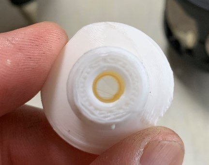 取り付けるにあたり、3Dプリンターで両ネジを作ってみました。でもレーザー光がと通るように穴をあけて。