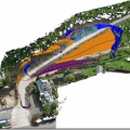 1)地上型レーザースキャナーで現況地形の点群を取得
