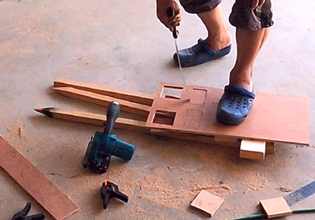 安全サンダル?を履いて細かい作業開始。夕方など合間に作ったのですが、トータル1日はかかっているでしょうね。ちなみに3Dプリンターは1つ10時間です。