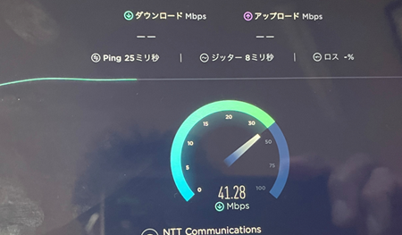 「41Mbps 」これは通常の家庭で使っている数値ぐらい出ていますね。フルHDは3Mbpsあれば動画が何とか見れます。ちなみに4Kでしたら20Mbpsが最低ですけど。