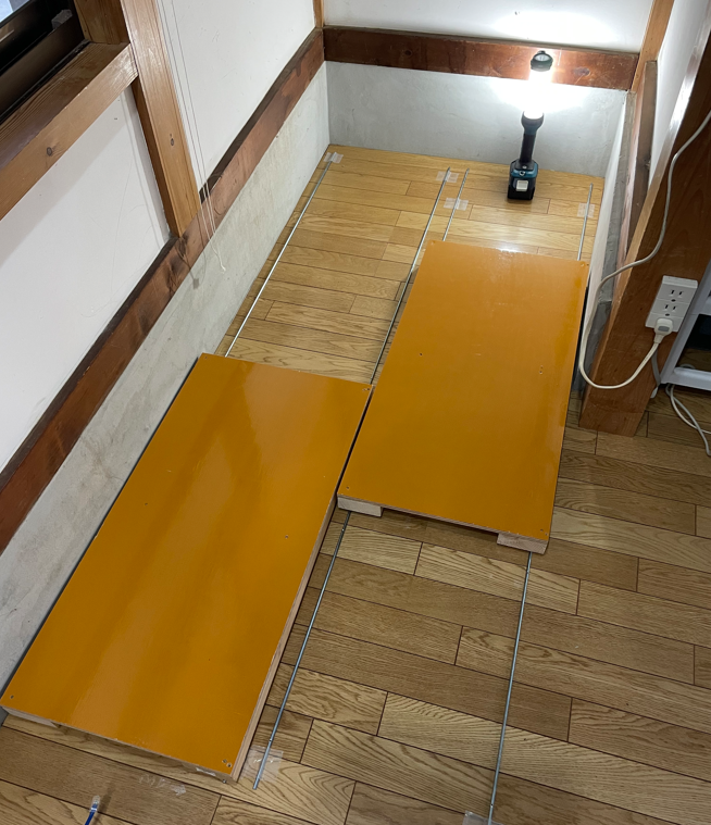 床にレールを設置して、台車を作成しました。
