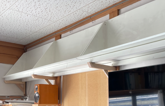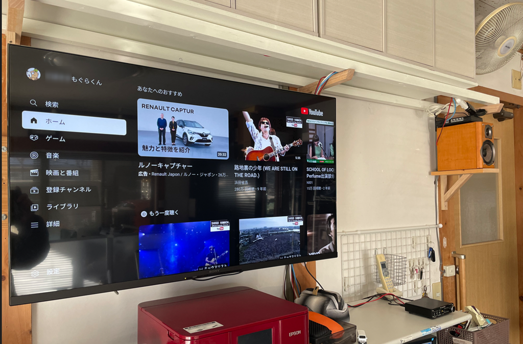 それとYouTubeにアップしたり、動画を作成することもあるので、PCやスマホから直接大型モニターで見れるようにGoogleテレビを事務所に持ってきました。それに持っていたスピーカーを壁に取り付けたら・・・シアタールームになってしまいました。(笑)