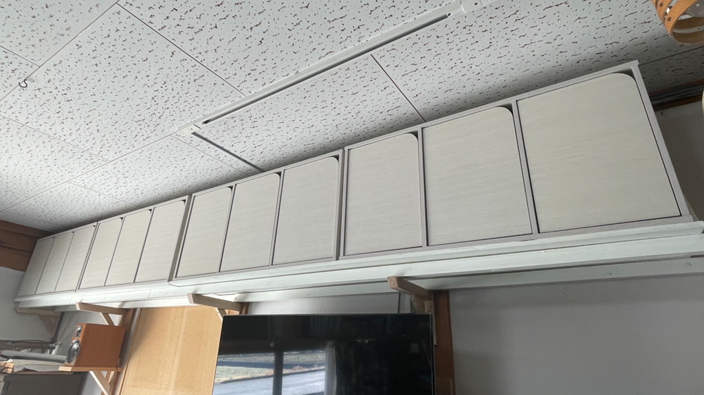 最後にニトリの扉付き三段ボックス入れて吊り棚の完成です。