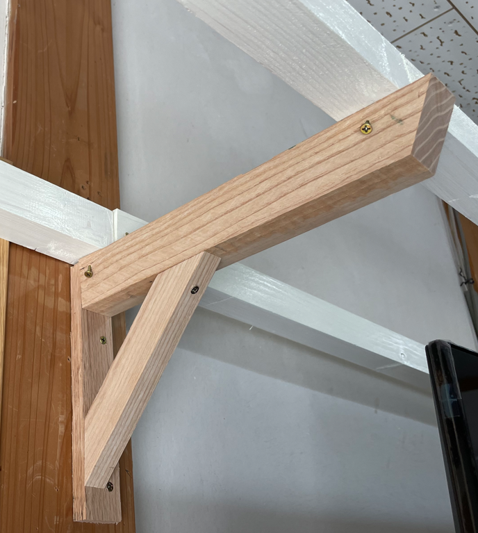 家具の町”府中”で仕事をすることになりまして、家具屋さんに立ち寄った際に、端切れ木材を”薪”として一束300円で売っていました。でも木の質は最高のものばかり。それを使って、こんなものを作ってL字ブラケットを作成しました。