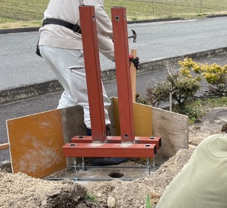 山から切り出してきた杉の木を立てました。(長さ12m)