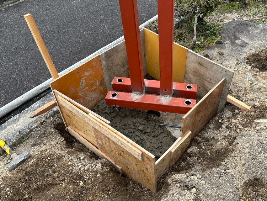 基礎の床掘。古い施設を撤去 + 超、適当に型枠設置