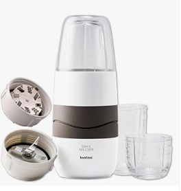 それを数回に分けて、オーブントースターで茶色になるまで乾燥させます。そしてこんな”ミルミキサー”で粉末にします。