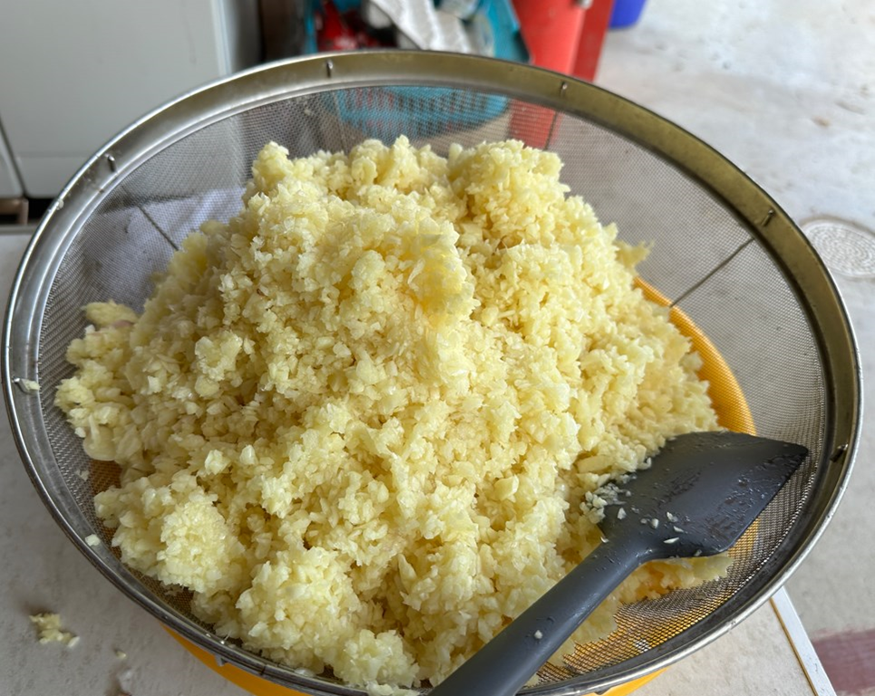 実はジジババが畑でたくさんのニンニクを作っているのですが、玉ねぎと一緒にぶら下げているのですが、早くダメになってしまいます。そして冷凍にもしていますが使いにくいというのもあります。 そこで昨年から”ニンニクパウダー”を作成しています。