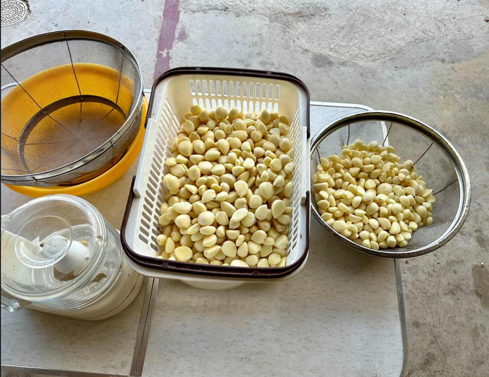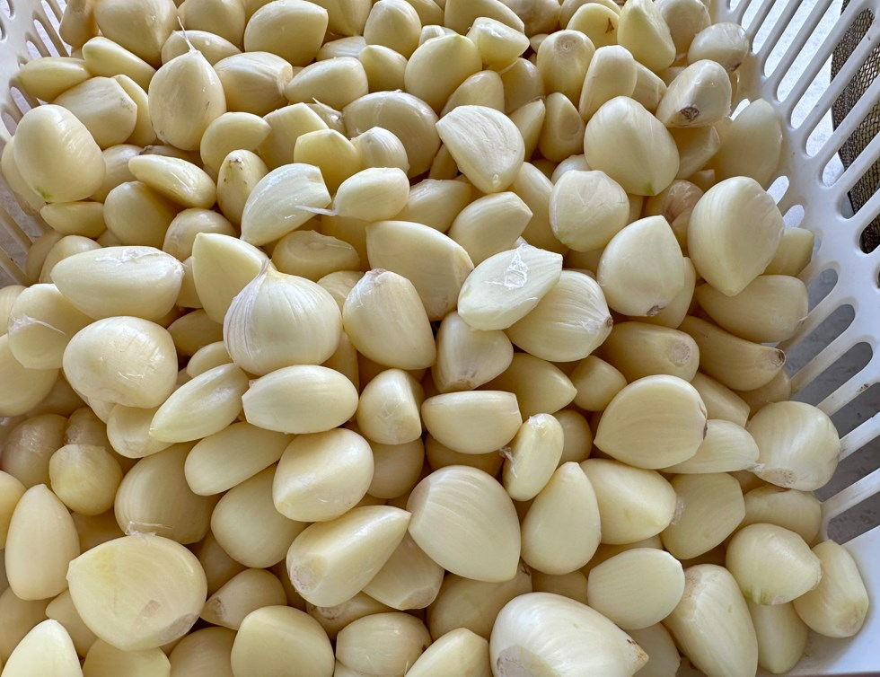 ニンニクの皮をむいて