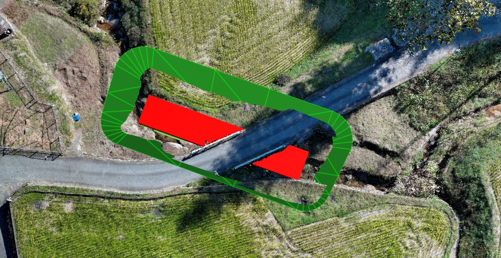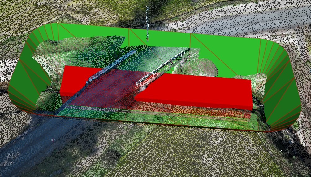 いまいち完成イメージがわいていなかったので、現況点群+床掘+構造物モデルを一つで表示してみました。