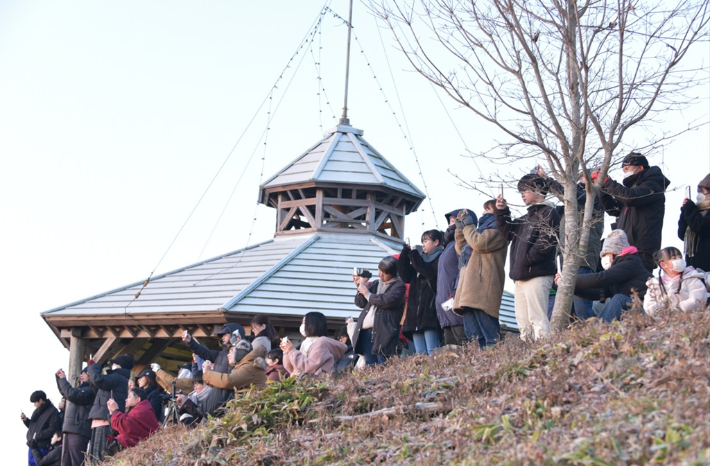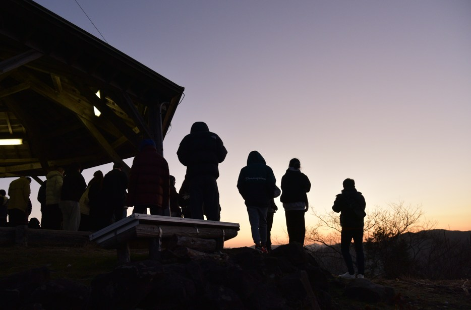 山頂は360度パノラマ。 初日が出るのをみんな待っていますが、実は初日が出る前の、赤く空が染まる風景もとても良いのですよね。