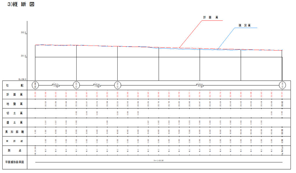 4)縦断・横断図を作成して計画線を作成