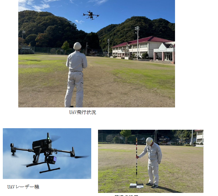 2)レーザードローンで地形を3D化(草が多いのレーザー機を使用)