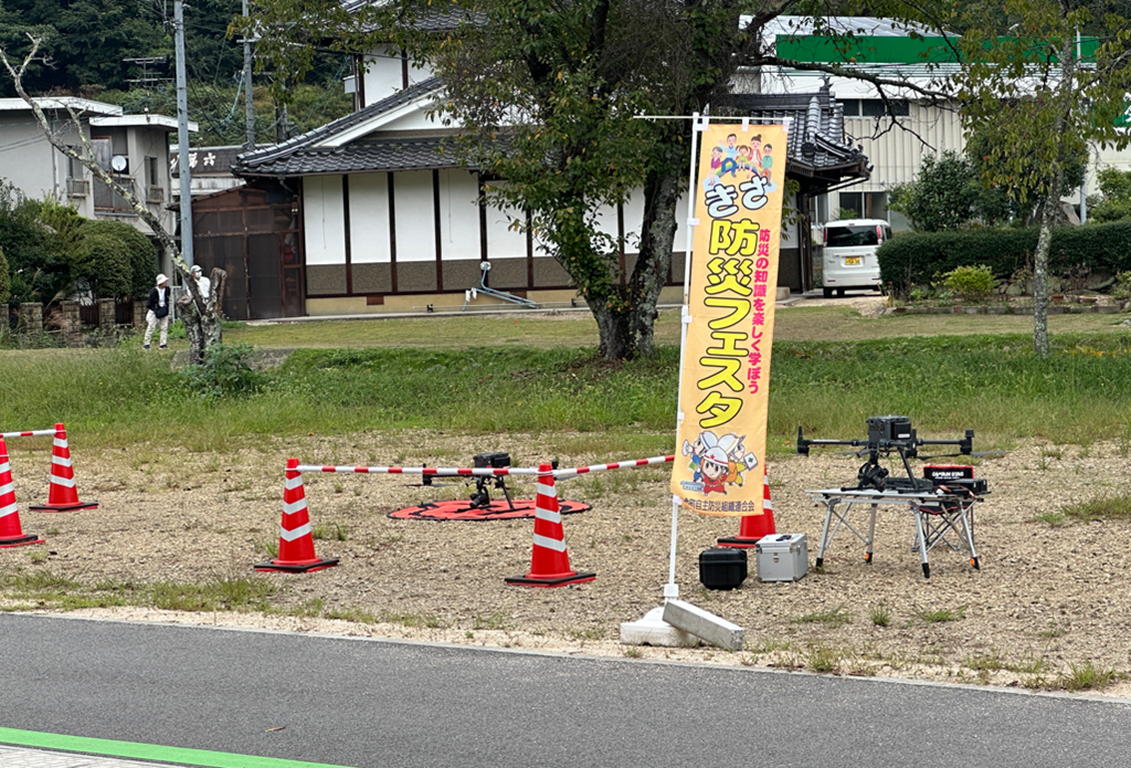 昨日は地域の ”防災フェスタ”が開催されて、オイラも災害時にドローンで状況把握するという名目で自治振興会や消防・警察と合同で上空からの映像撮影を行いました。