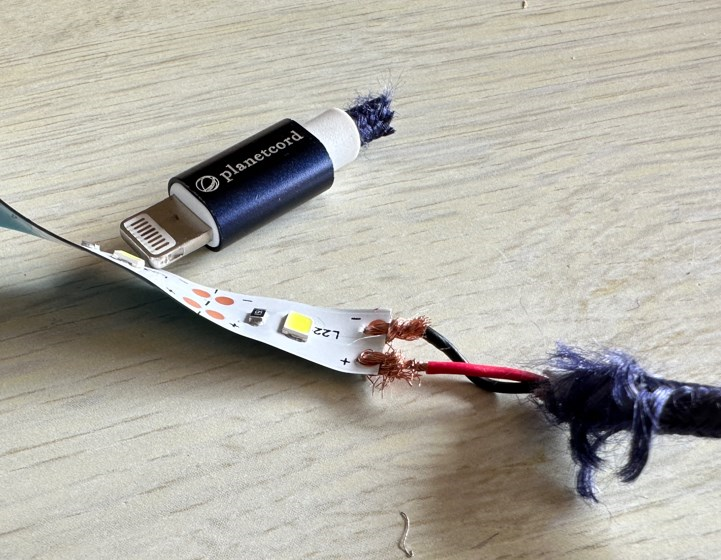 そして、不要なUSBケーブルを取り付けて、モバイルバッテリーを接続して完成です。