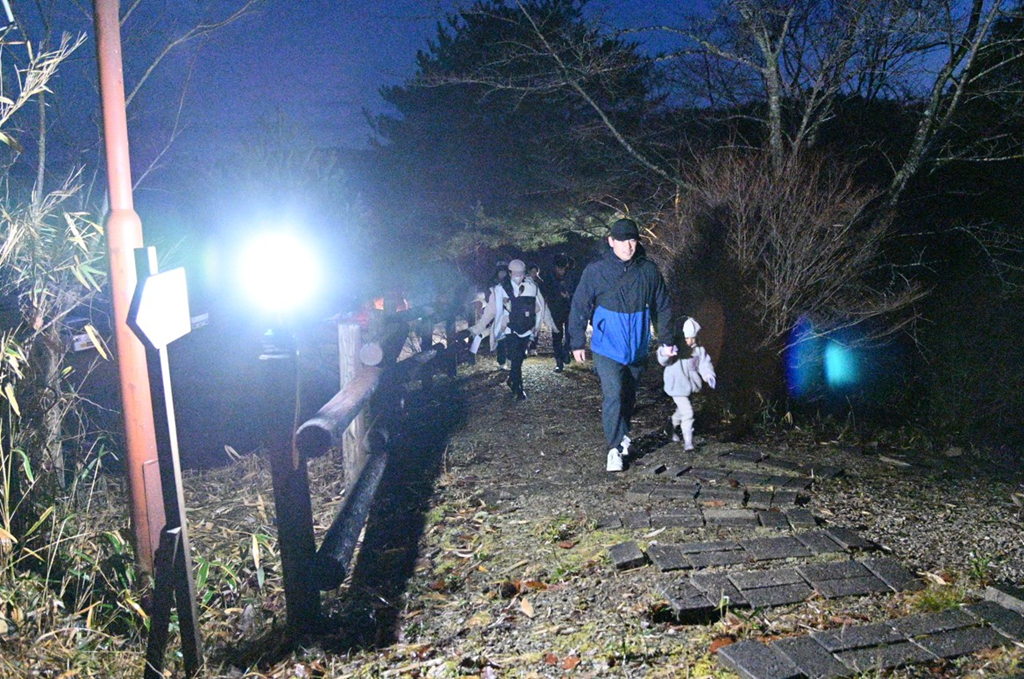 昨年から我が家の投光器などを持っていき、登山道に明かりをつけています。