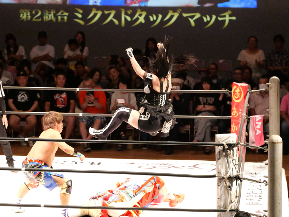 女子プロレスというわけか、登場シーンが派手でしたね。