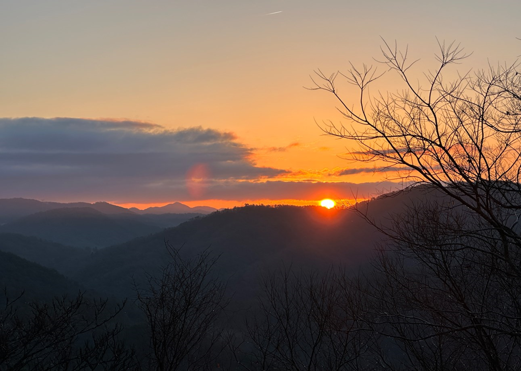 平地や海では高い山に行かなくても、日の出時間に初日を見ることが出来ますが、我が家みたいに山に囲まっれていますと、約1時間遅くなってやっと太陽を見ることが出来ます。