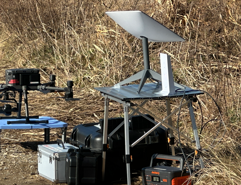 まずは現場内にWiFi網を作るためスターリンクの設置。