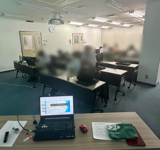 まあ、30分前に機材を入れ替えたりがドタバタしたり、通信速度は良かったのけど、モニターが固まったりと、100点ではなかったのですが、何とか全部の生徒がバックホウの遠隔操作を体験することが出来ました。