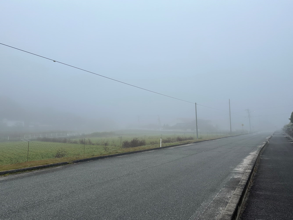 我が家の前がこんなに霧になっているということは・・・山に上がるとこんな感じになります。