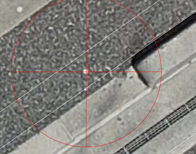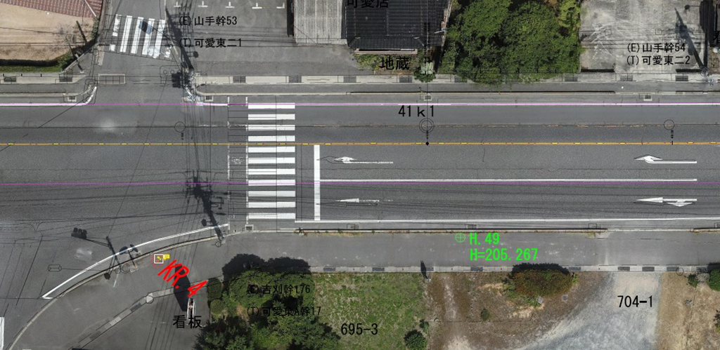 小さな測量ピン+白笠をつけて、100mごとの基準点を作成していましたが、このようにオルソ写真でも確認出来て、計算上誤差は全線基準点で数mmで作成されています。