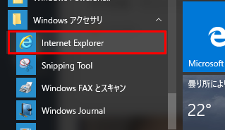 Internet Explorer は、『すべてのアプリ』 → 『Windows アクセサリ』の中にあります。