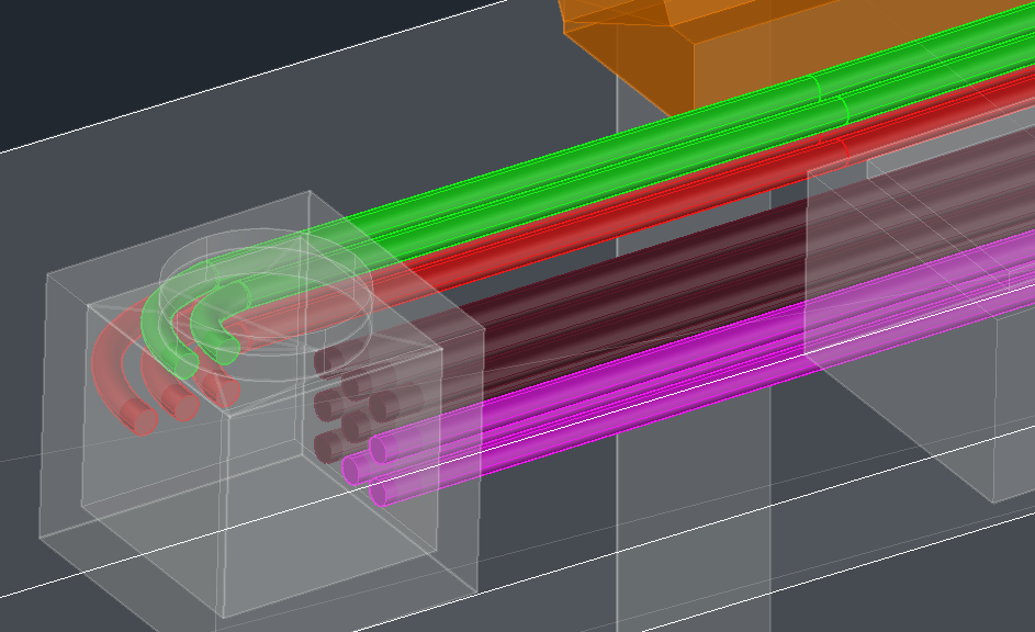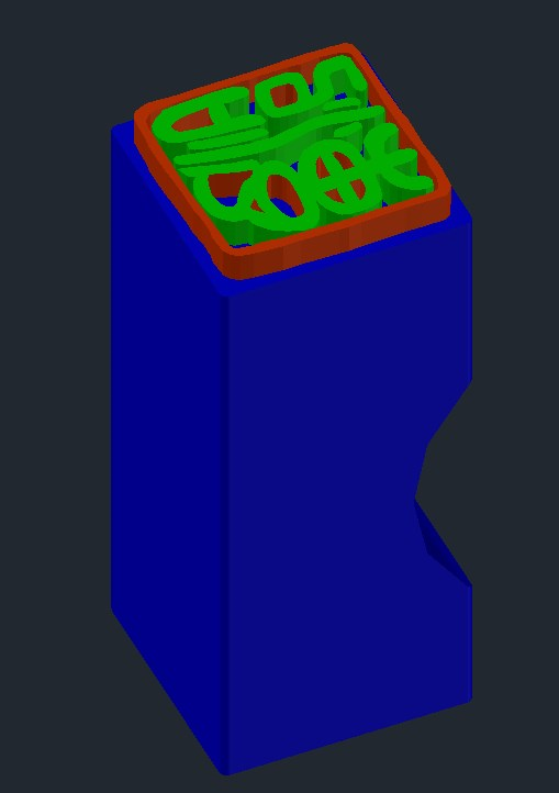 そのポリラインをに高さを持たせてソリッドにして、”くり抜く”部分だけ色を変えて長くしておきます。