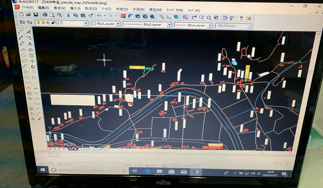 これをコピー機でスキャンして、パソコンに取り込み、AutoCADにこのスキャンデータを張り付けて、輪郭をポリラインでトレースします。
