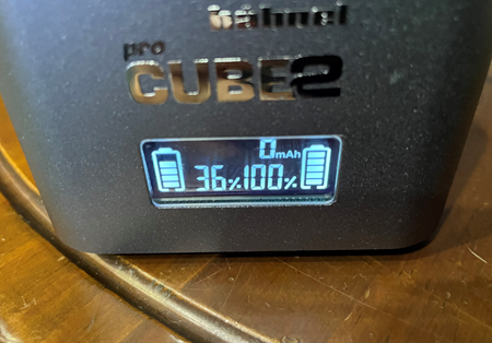 夜勤で撮影していますと、カメラ1台で1晩でバッテリー4本ぐらい使いますので、現場で充電しながらなのですが、これは2本同時に充電できることと、充電メーターが付いていますので、満充電でなくてもメーターを見て使うことが出来るのです。